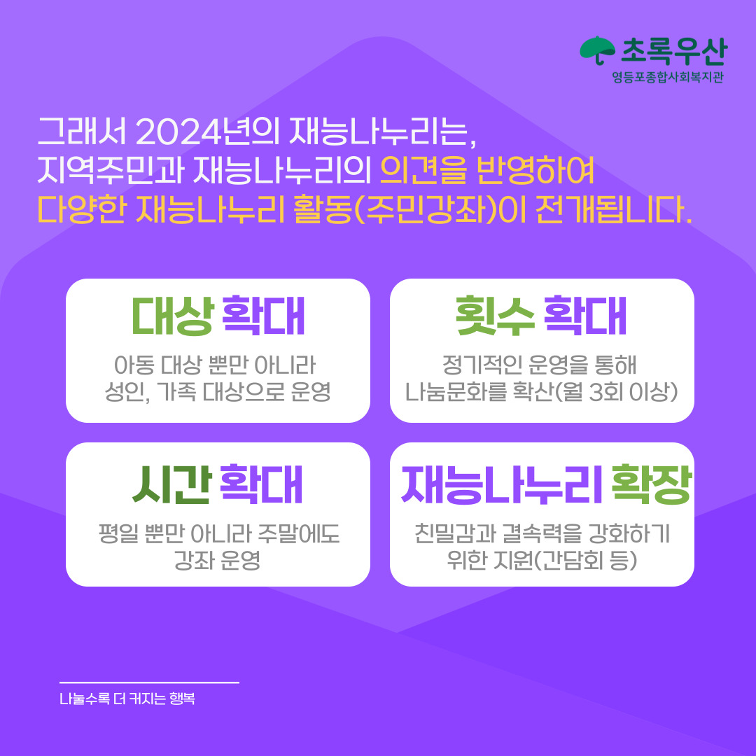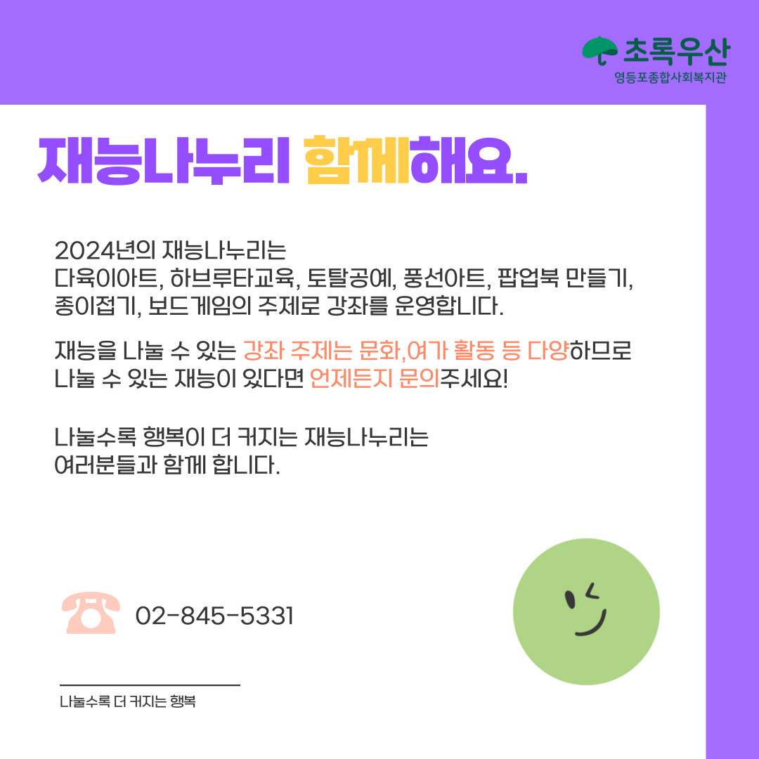 영등포종합사회복지관과 주민이 함께하는 다양한 소식을 알려드립니다.