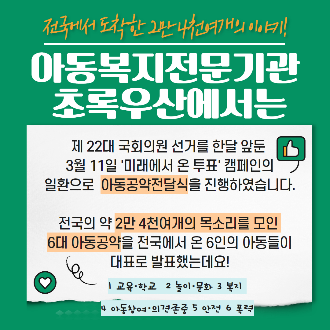 [아동권리옹호단] 초록우산 아동공약전달식 참여