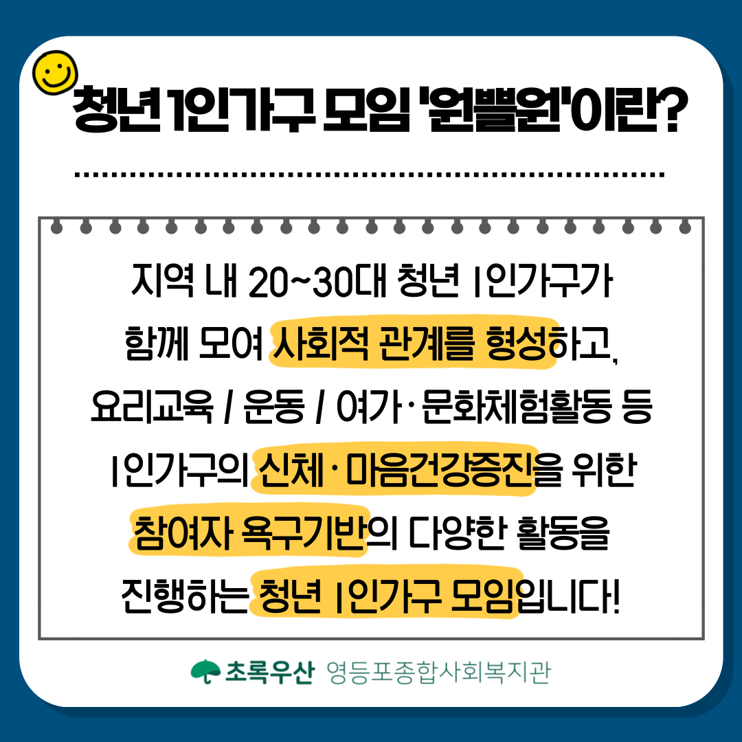 2~30대 청년 1인가구 모임 '원쁠원'