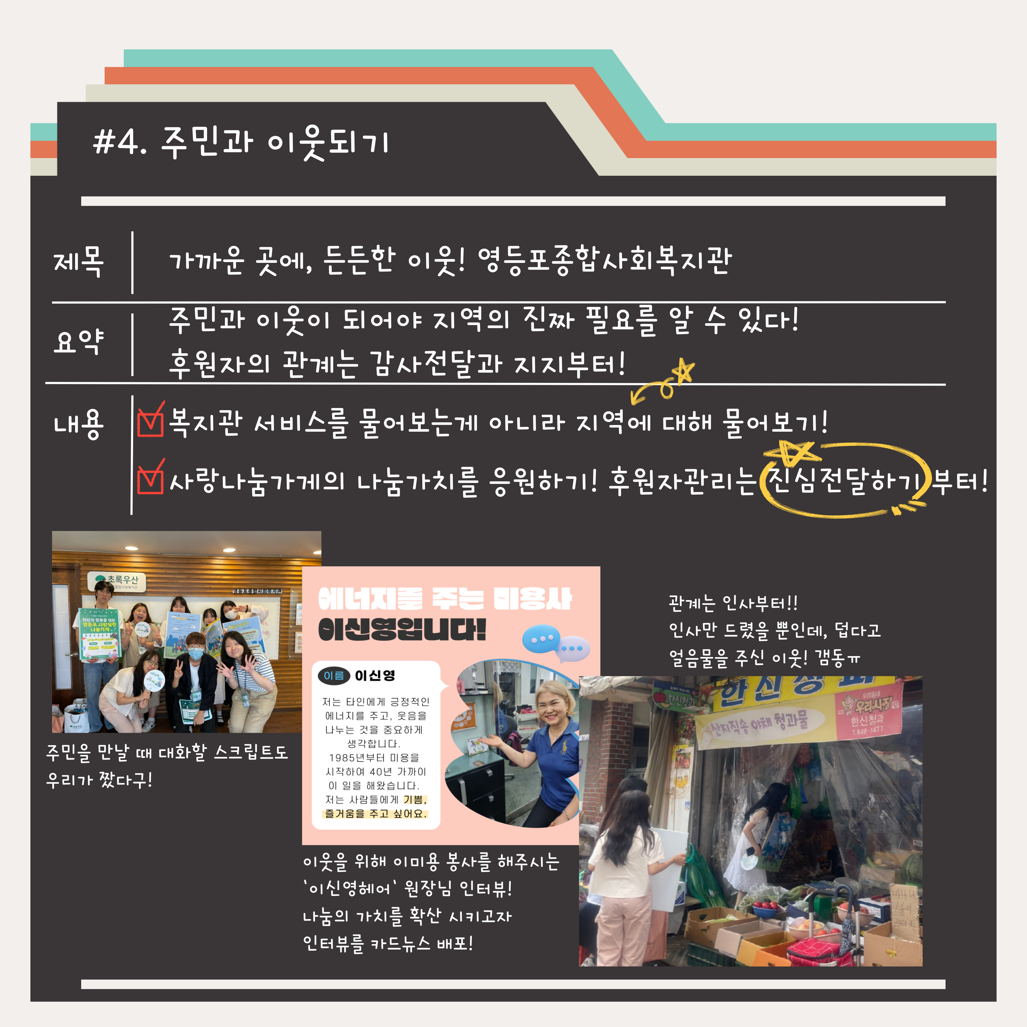 영등포종합사회복지관과 주민이 함께하는 다양한 소식을 알려드립니다.