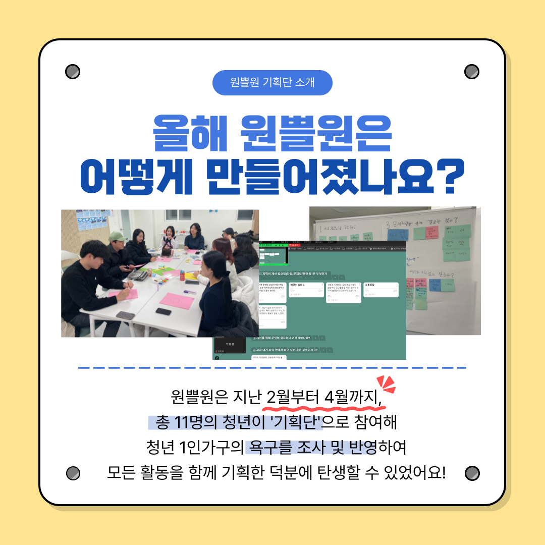 [청년 1인가구] 2025년 원쁠원의 상반기 활동을 소개합니다!