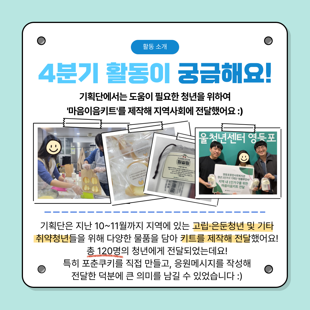 [청년 1인가구] 2025년 원쁠원의 4분기 활동을 소개합니다!