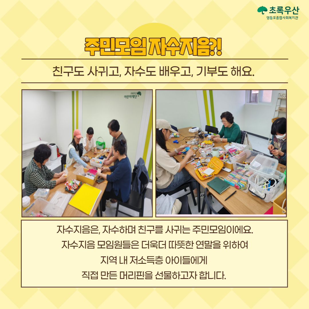 주민모임 자수지음 지역사회기부활동 '머리핀 기부'