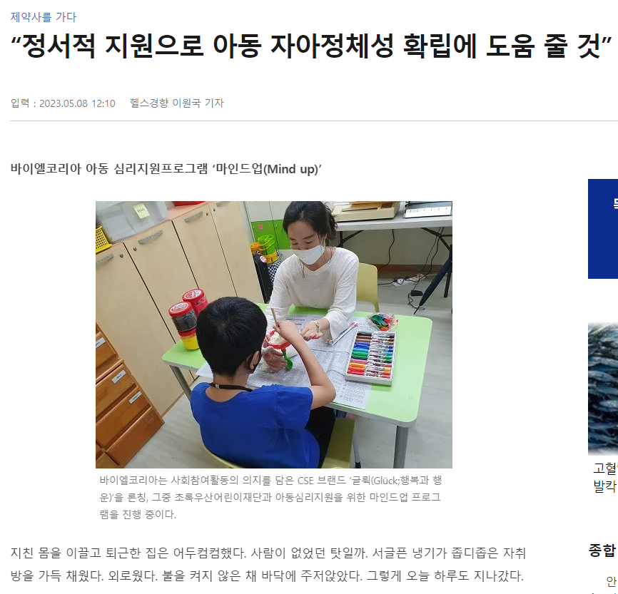 【경향신문, 헬스경향】바이엘코리아 아동 심리지원프로그램 지원 '찾아가는 심리지원 Mind-up'