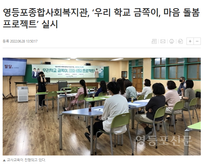 【영등포신문】영등포종합사회복지관 찾아가는 교사교육_"우리학교 금쪽이, 마음돌봄 프로젝트" 실시