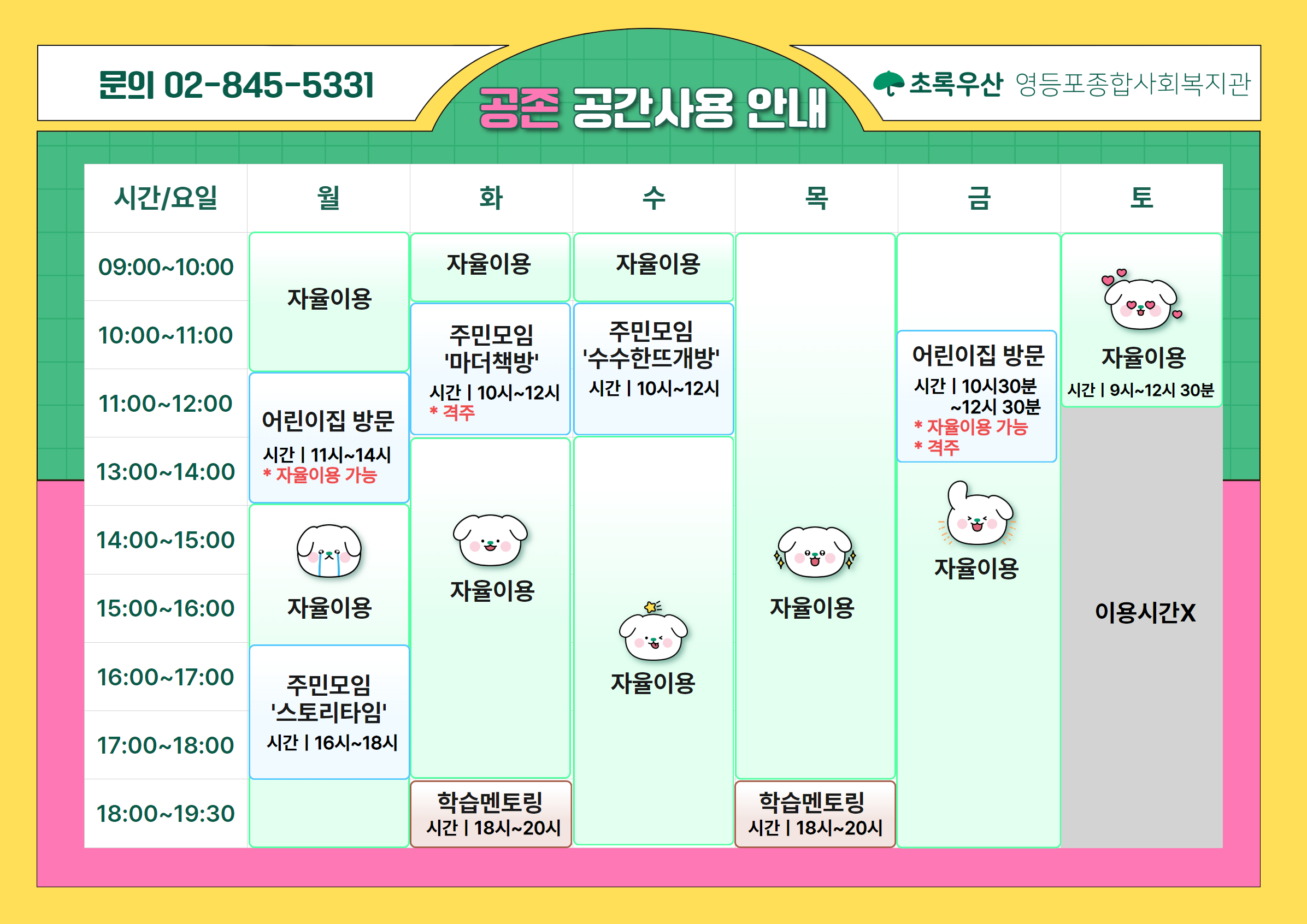 ※ 공존은 지역주민 자율이용공간으로 자율이용 및 복지관 프로그램 진행을 우선시합니다.