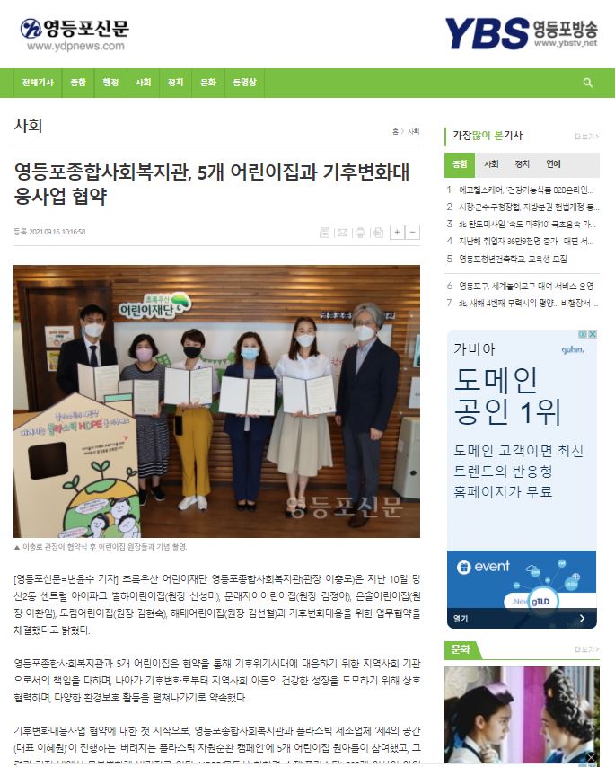 【영등포신문, 영등포투데이】 5개 어린이집과 기후변화 대응사업 협약