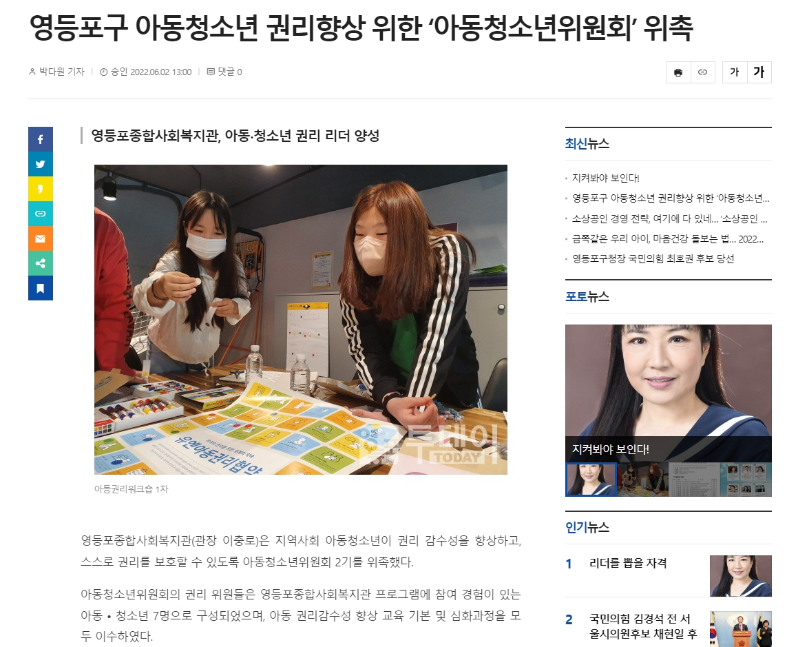 【영등포투데이, 영등포신문】영등포종합사회복지관, 아동청소년위원회 2기 위촉