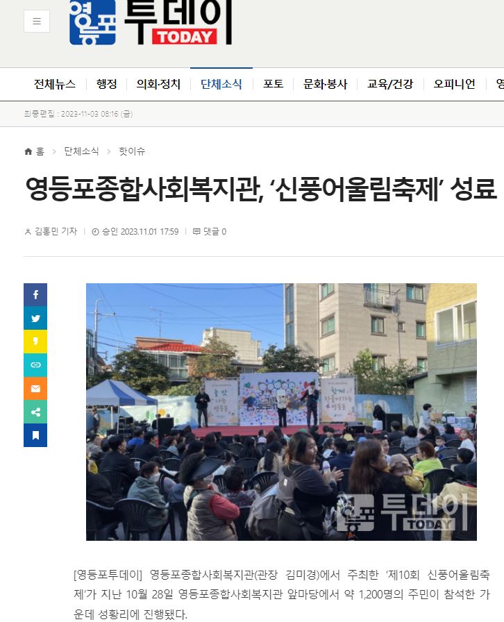 【영등포신문, 영등포투데이】영등포종합사회복지관, '신풍어울림축제'성료