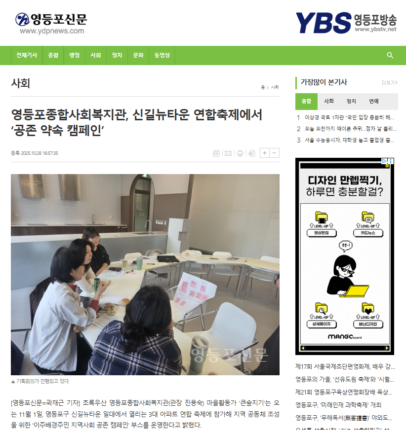 [영등포신문, 영등포투데이] 영등포종합사회복지관, 신길뉴타운 연합축제에서 '공존 약속 캠페인'