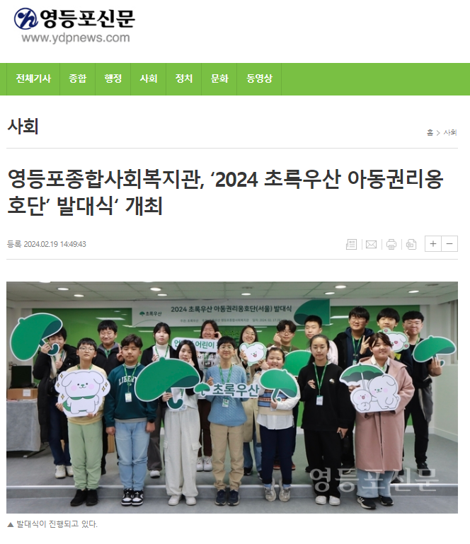 [영등포 신문] 영등포종합사회복지관, ‘2024 초록우산 아동권리옹호단’ 발대식‘ 개최