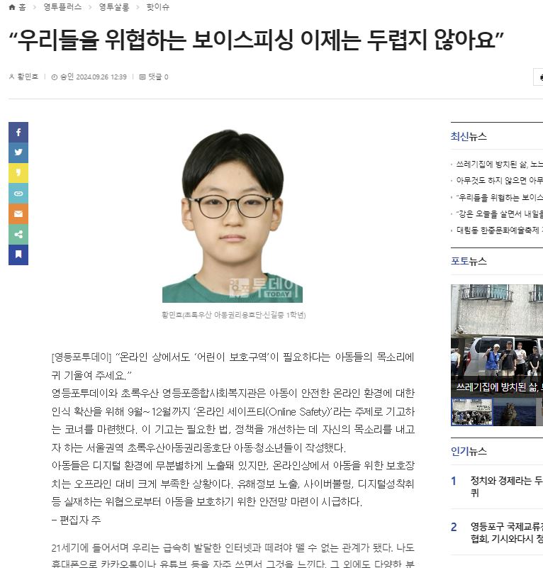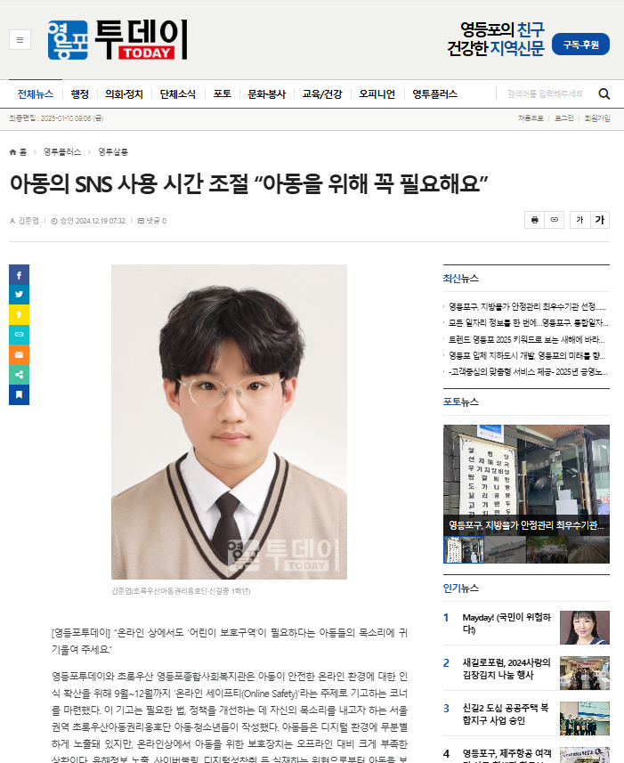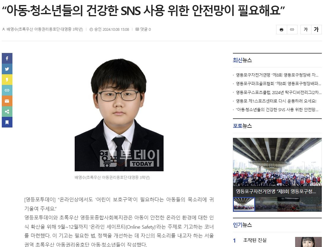 [영등포투데이] “아동·청소년들의 건강한 SNS 사용 위한 안전망이 필요해요”