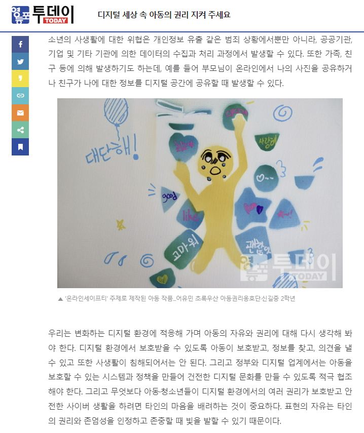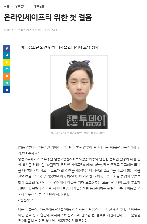 [영등포투데이] “디지털 세상 속 아동의 권리를 지켜주세요”