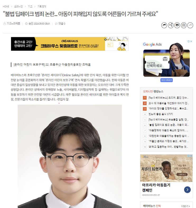 [베이비뉴스] "불법 딥페이크 범죄 논란... 아동이 피해입지 않도록 어른들이 가르쳐 주세요"