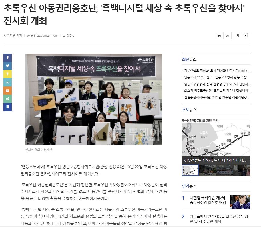 [영등포투데이] 초록우산 아동권리옹호단, '흑백디지털 세상 속 초록우산을 찾아서' 전시회 개최