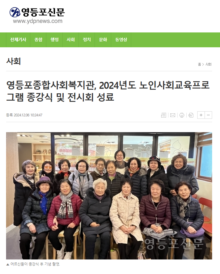 [영등포신문, 영등포투데이] 초록우산 영등포종합사회복지관, 2024년도 노인사회교육프로그램 종강식 및 전시회 성료