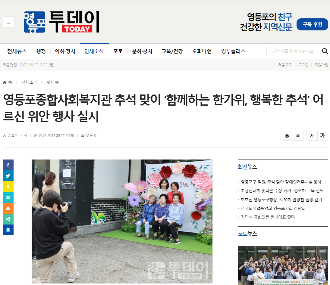 【 영등포신문, 영등포투데이】추석맞이 '함께하는 한가위, 행복한 추석' 어르신 위안행사 실시
