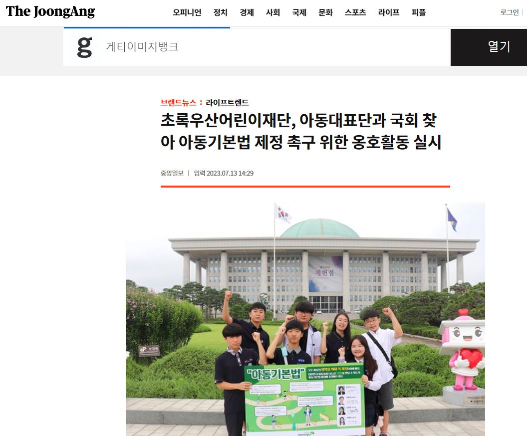 【중앙일보, 인사이트, 영등포신문, 영등포 투데이 등 아동청소년위원회 아동기본법 제정 촉구 활동