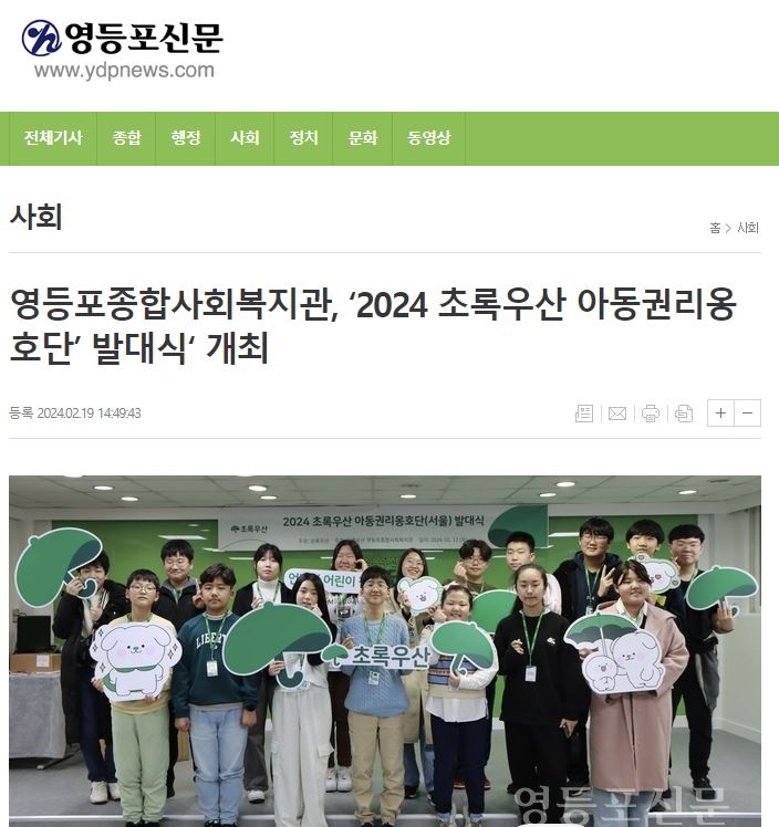 【영등포신문】 초록우산 영등포종합사회복지관, ‘2024 초록우산 아동권리옹호단’ 발대식‘ 개최