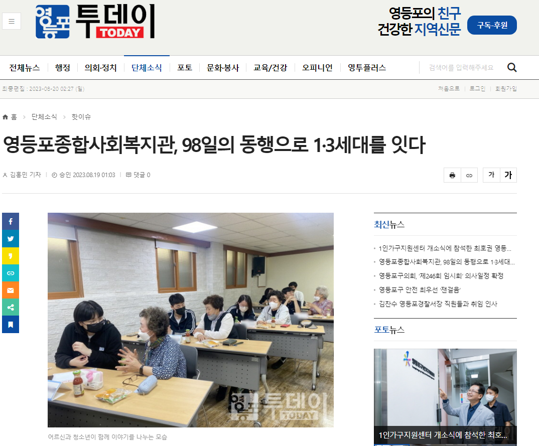 【 영등포투데이,영등포시대, 영등포신문】영등포종합사회복지관, 98일간의 동행으로 1·3세대를 잇다