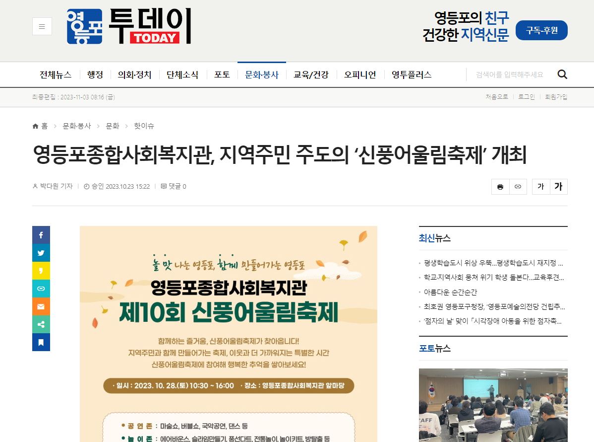 【영등포신문, 영등포투데이】영등포종합사회복지관, '신풍어울림축제'성료