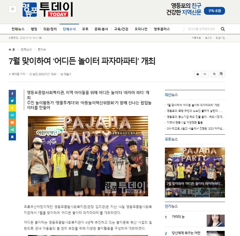【영등포투데이】7월 맞이하여 '어디든 놀이터 파자마파티' 개최